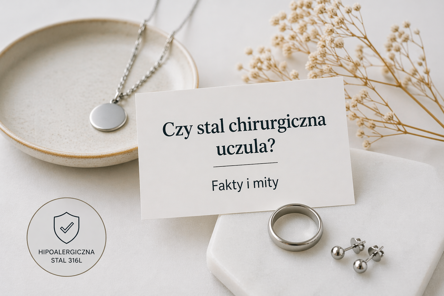 Biżuteria ze stali chirurgicznej cieszy się ogromną popularnością – jest trwała, estetyczna i przystępna cenowo. Jednocześnie wielu klientów zastanawia się: czy stal chirurgiczna uczula? Wokół tego tematu narosło sporo mitów. W tym artykule rozwiewamy wątpliwości i wyjaśniamy, jak wygląda relacja stal chirurgiczna a alergia w praktyce.