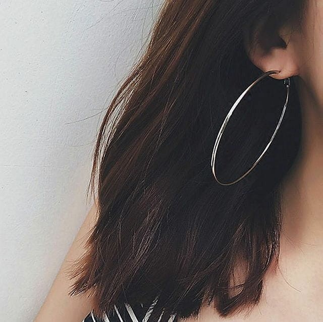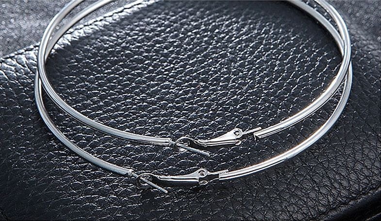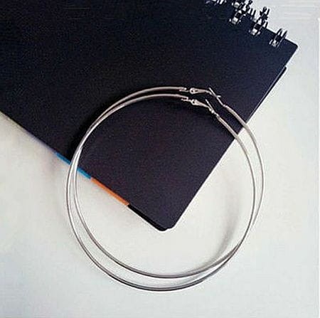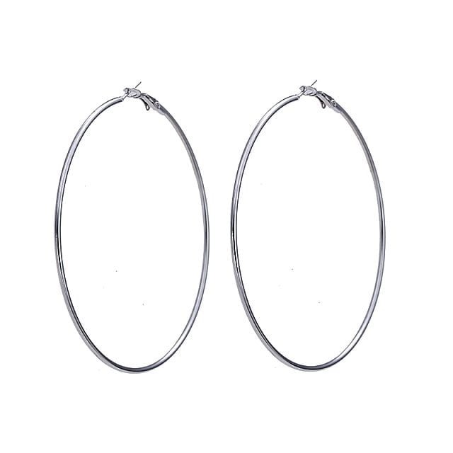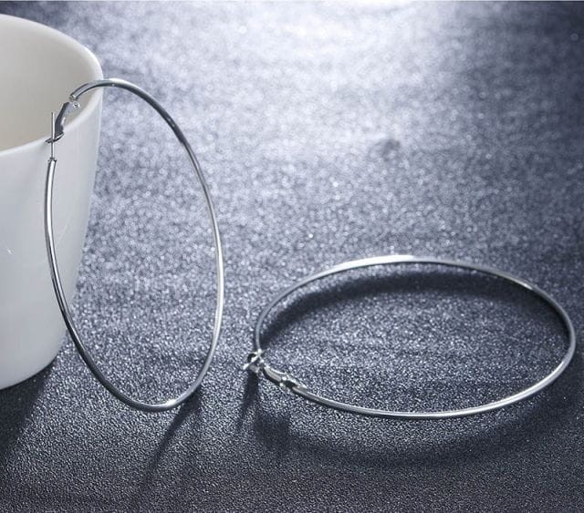 Duże okrągłe kolczyki w kolorze srebrnym. Średnica 8 cm.